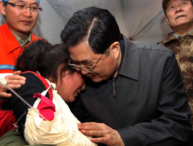 Hu Jintao (Photo credit: Xinhua) Chinese President, Hu Jintao, consoled victims of the terrible earthquake that hit China last week, killing over 2,000 people. Previously, Jintao, was often seen smiling in public when greeting his constituents and foreign leaders, but international papers noted he let his compassionate side show in visiting, embracing and encouraging earthquake survivors this week. Jintao promised them "new homes" stating the region "will be rebuilt" and they "will have bright futures." That was nice. STORY SOURCE: Hu Shows Empathetic Side in Quake Area |