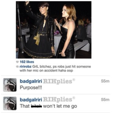 Rihanna Not Sorry She Whacked Fan In The Face With Microphone June 20. 2013 Rihanna's Instagram (spotted at RhymesWithSnitch) Rihanna's fanbase, known as the "Rihanna